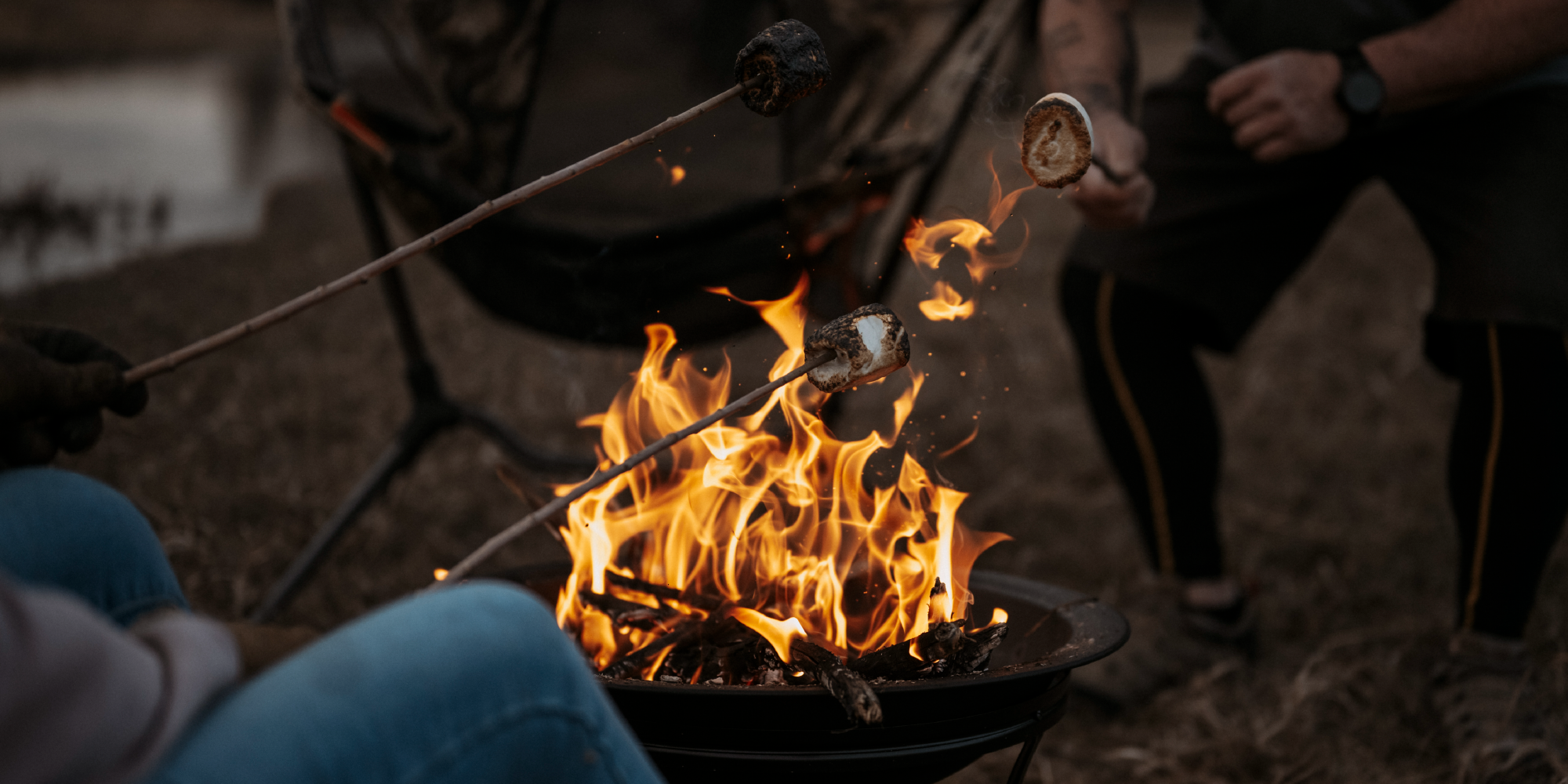 A log grate that can also support various cookware like cast iron pans, allowing the firepit to double as an over-the-fire cooking tool